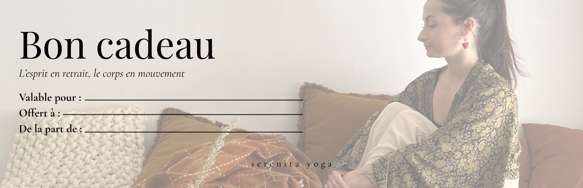 valable sur le studio en ligne, sur les cours particuliers ou sur les évènements organisés par Serena (retraites / stages.)
