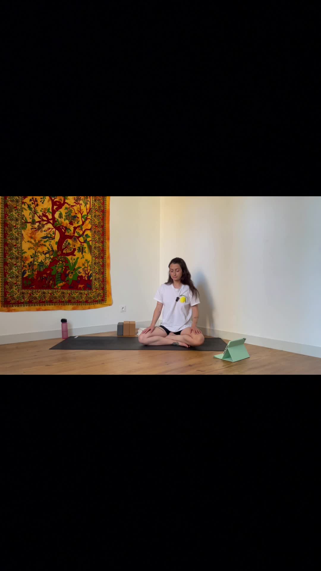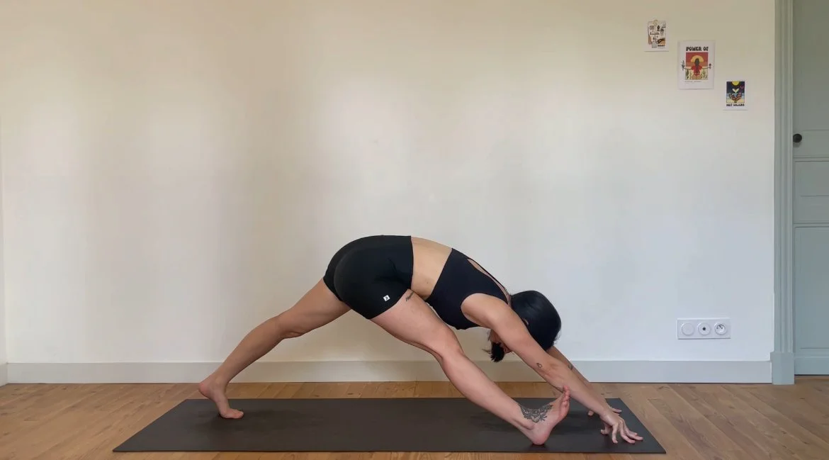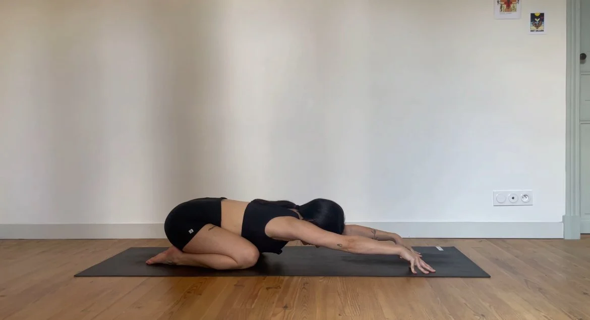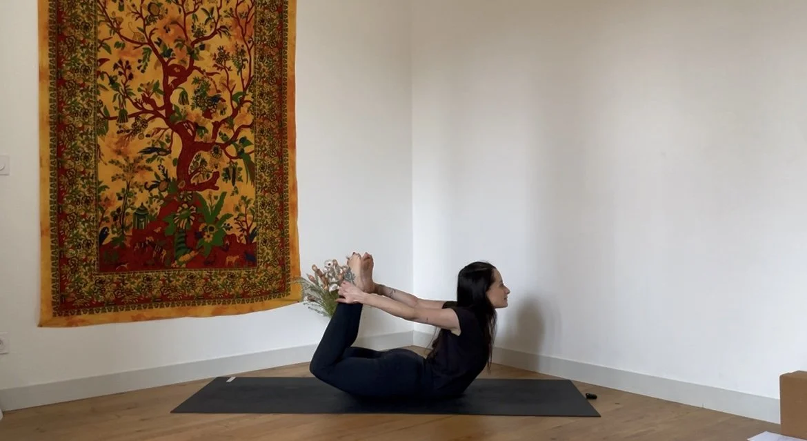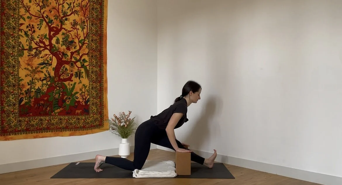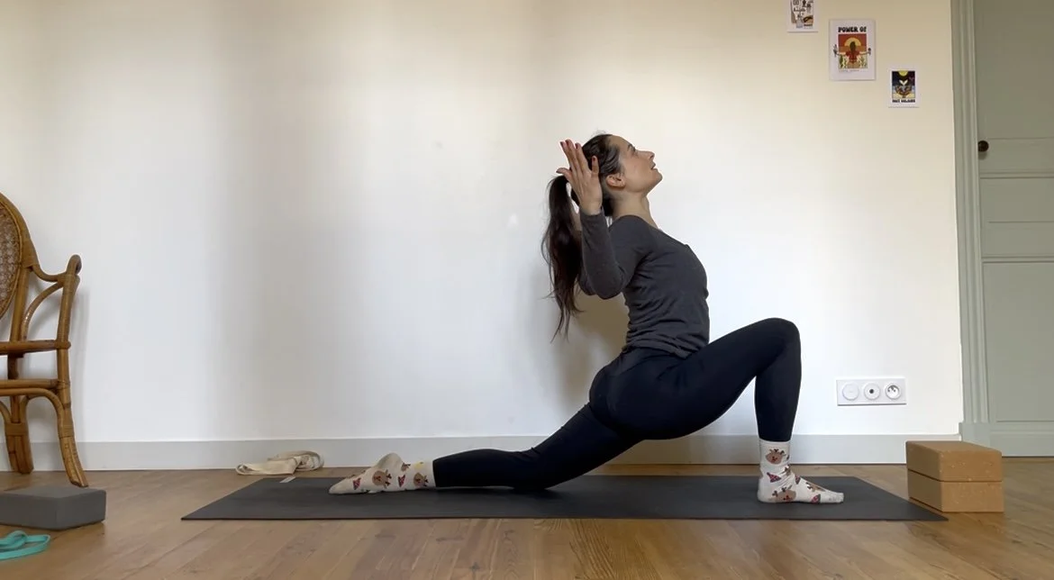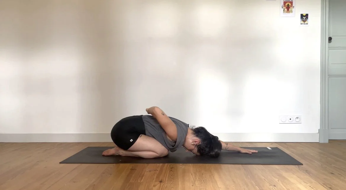Quelques postures debout pour se mettre en mouvement, puis un moment prolongé autour de postures assises vectrices de stabilité et d’ouverture dans les hanches.
