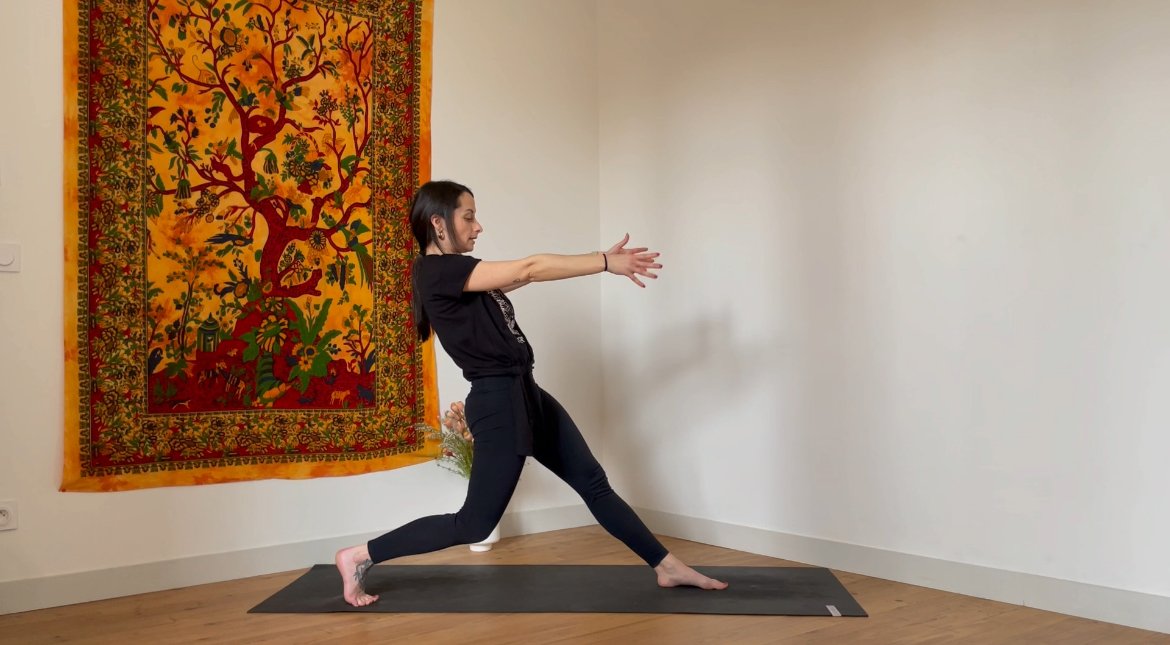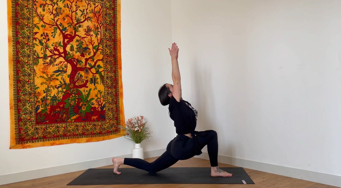 Ce cours propose une séquence de postures en escaliers, qu’on vient construire progressivement pour plonger dans l’état de flow. Cette séquence s’articule autour de postures debout actives qui réveilleront la puissance de vos jambes.