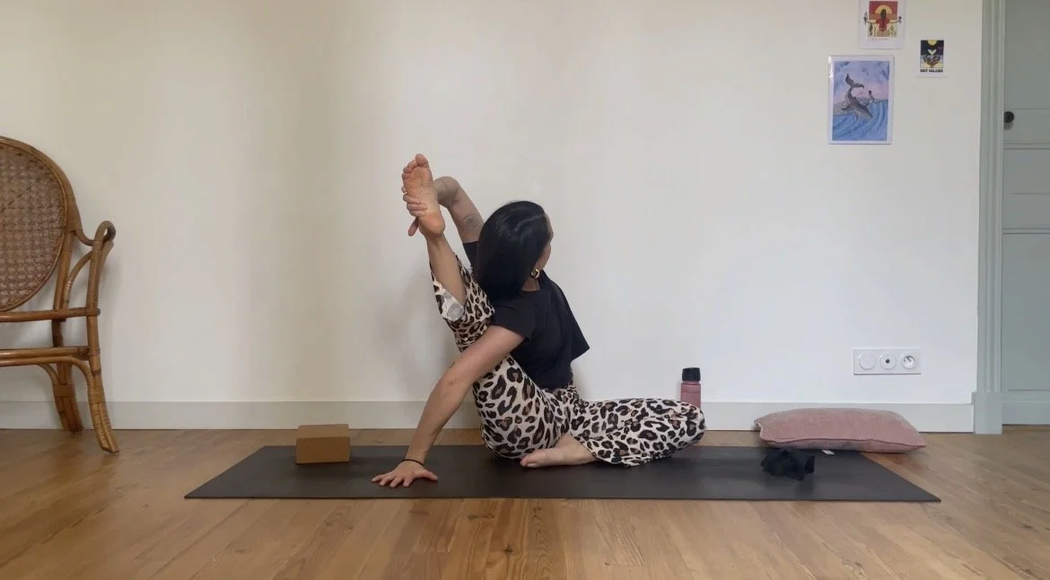 Une séance entièrement allongée au sol, pour mobiliser les hanches & étirer l’arrière des jambes.