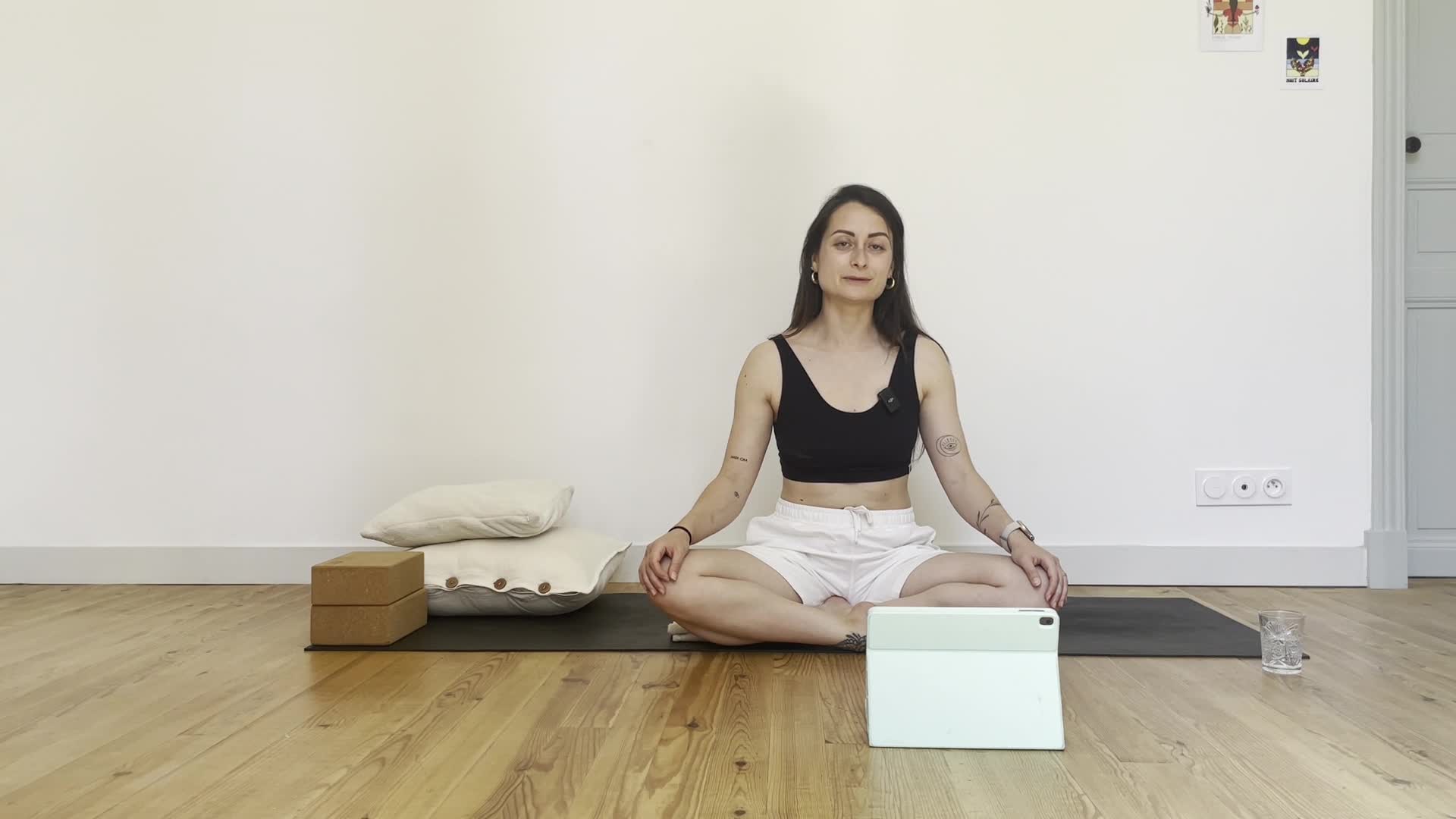 Matériel : ce que vous avez à portée de main, coussins, blocs de yoga.
